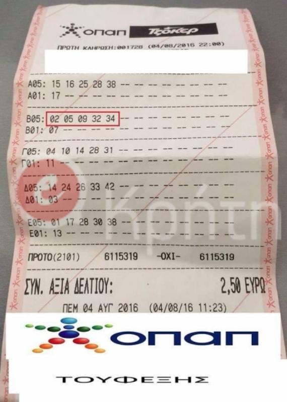 Το χρυσό δελτίο με το οποίο ένας Ηρακλειώτης έπισε το πεντάρι του τζόκερ και έγινε πλουσιότερος κατά 128.000 ευρώ έδωσε στη δημοσιότητα το ekriti.gr .