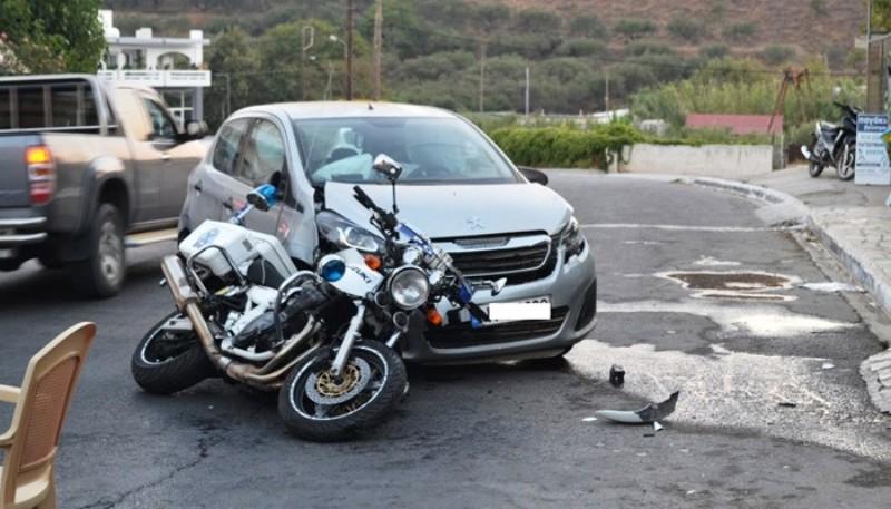 Αυτοκίνητο έπεσε πάνω σε μοτοσικλέτα της Τροχαίας στα Χανιά (Photo)