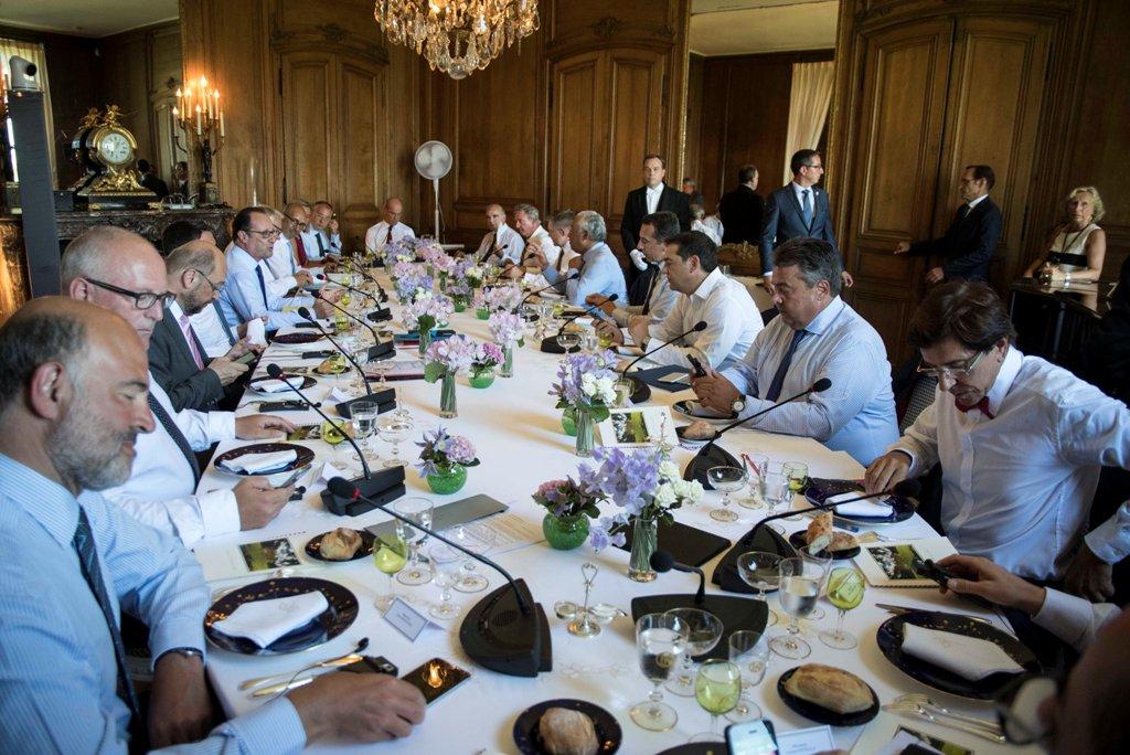 «Θα ήθελα πρωτ’ απ’ όλα, θα ήθελα να εκφράσω μια σκέψη για την Ιταλία», δήλωσε ο Γάλλος πρόεδρος Φρανσουά Ολάντ καλοσωρίζοντας τους Ευρωπαίους ηγέτες, πριν από το γεύμα εργασίας, στο κάστρο Σελ-Σεν Κλου.