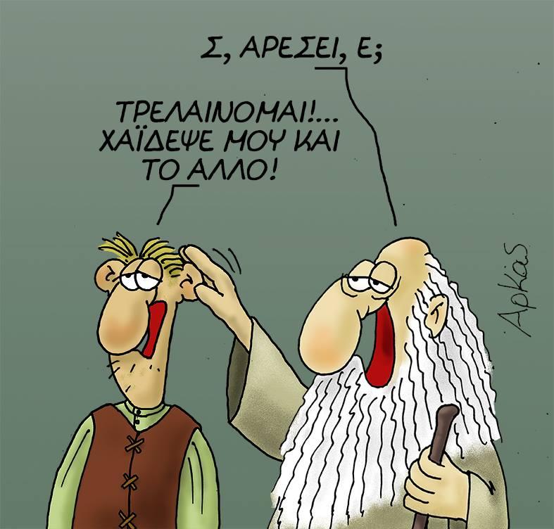 Τις δηλώσεις του Γιάννη Καλλιάνου, κατά την αποχώρησή του από την Ένωση Κεντρώων, καθώς και τις δηλώσεις του Βασίλη Λεβέντη περί υποστήριξης του ΣΥΡΙΖΑ σατίρισε με το δικό του χιουμοριστικό ύφος ο γνωστός σκιτσογράφος Αρκάς.