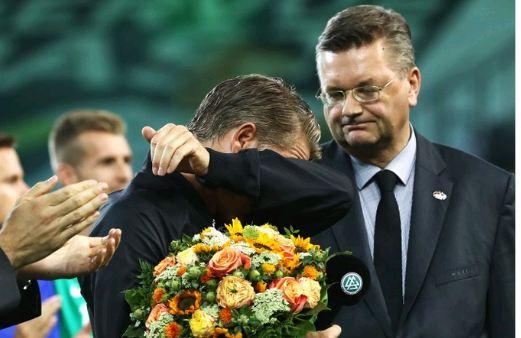 Ο Γερμανός μέσος είχε δηλώσει πως θα αποσυρθεί από τα «πάντσερς» μετά την ολοκλήρωση του φιλικού με την Φινλανδία και για αυτό λίγο πριν την έναρξη του αγώνα βραβεύτηκε για την προσφορά του στο αντιπροσωπευτικό συγκρότημα και τότε ήταν η στιγμή που δεν άντεξε και λίγησε!