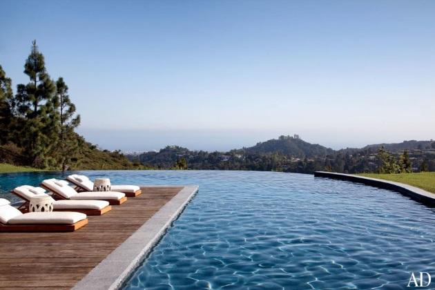 Η τεράστια πισίνα της βίλας “βλέπει” προς τον Ειρηνικό ωκεανό.