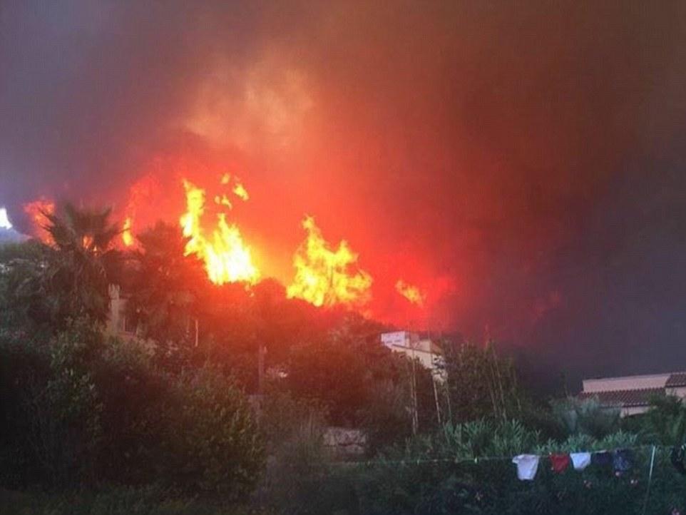Φωτογραφίες που αναρτήθηκαν σε ιστοτόπους κοινωνικής δικτύωσης δείχνουν τις φλόγες να έχουν πλησιάσει πάρα πολύ σε σπίτια της περιοχής.