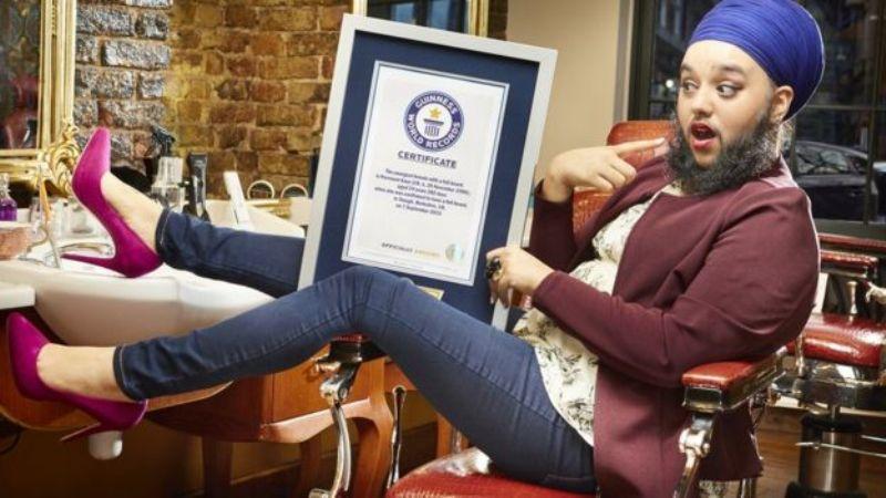 H Harnaam Kaur, ένα μοντέλο με γενειάδα από το Μπερκσάιρ της Αγγλίας, έγινε το νεότερο μοντέλο με μακριά γενειάδα το οποίο εντάσσεται στο βιβλίο των Ρεκόρ Γκίνες. Η 24χρονη υπήρξε η πρώτη γυναίκα μοντέλο που ανέβηκε στην πασαρέλα κατά τη διάρκεια της Εβδομάδας Μόδας του Λονδίνου τον Μάρτιο του 2016.