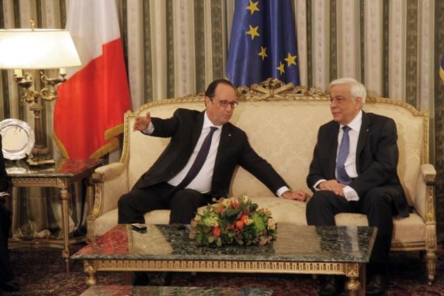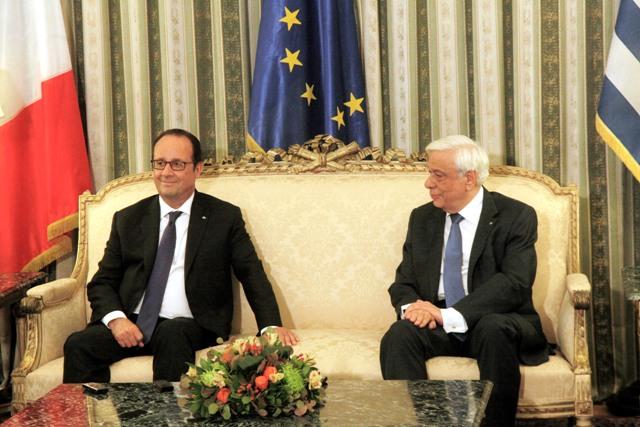 Το άριστο κλίμα στις σχέσεις Ελλάδος-Γαλλίας επιβεβαιώθηκε κατά την συνάντηση του Προέδρου της Δημοκρατίας Προκόπη Παυλόπουλου με τον Γάλλο Πρόεδρο Φρανσουά Ολάντ στο Προεδρικό Μέγαρο, όπου συζητήθηκαν οι προκλήσεις που αντιμετωπίζει σήμερα η Ευρώπη τόσο στον τομέα της Οικονομίας και της κοινωνικής συνοχής, όσο και στον τομέα της ασφάλειας και της αντιμετώπισης του Προσφυγικού ζητήματος.