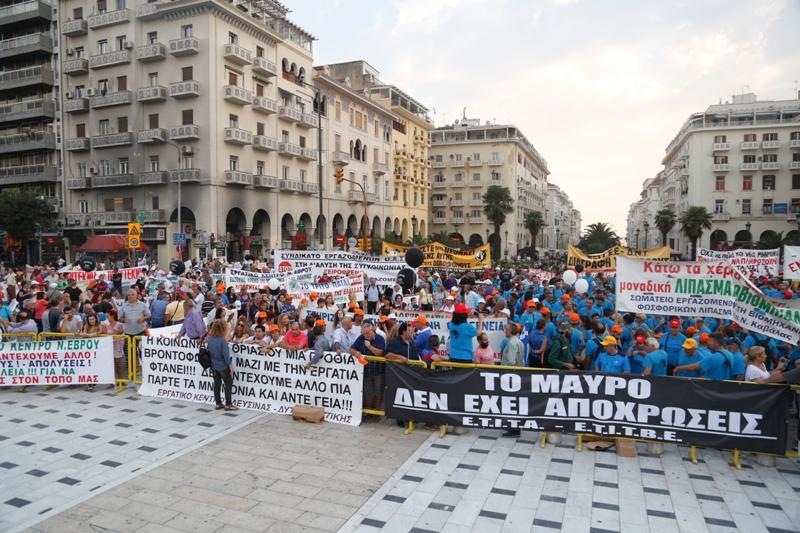 Με πρωτοβουλία της ΓΣΕΕ, της ΑΔΕΔΥ, του ΕΚΘ και της ΕΔΟΘ πραγματοποιήθηκε συγκέντρωση στην πλατεία Αρχαίας Αγοράς, όπου εκπρόσωποι συνδικαλιστικών οργανώσεων απηύθυναν ομιλίες στους διαδηλωτές, εκφράζοντας την αντίθεσή τους στις πολιτικές της κυβέρνησης και της ΕΕ.