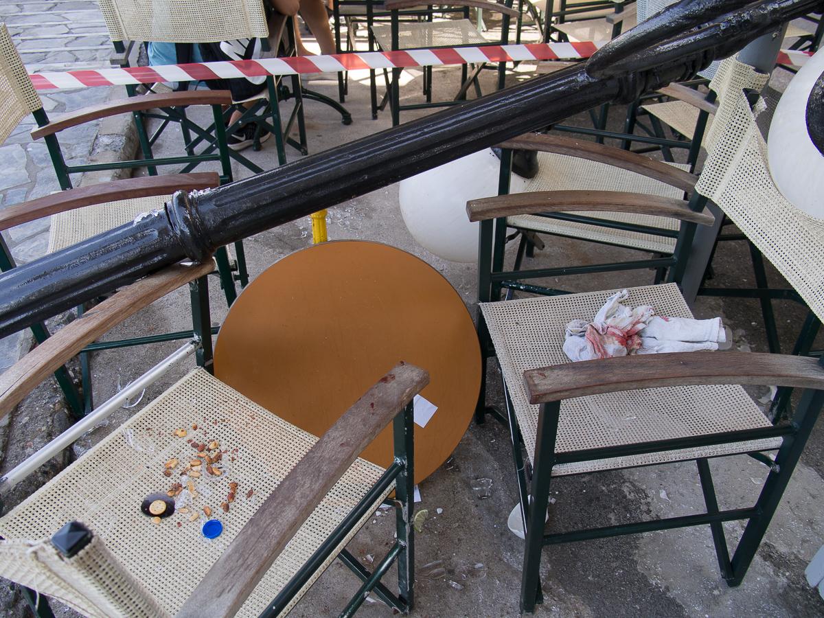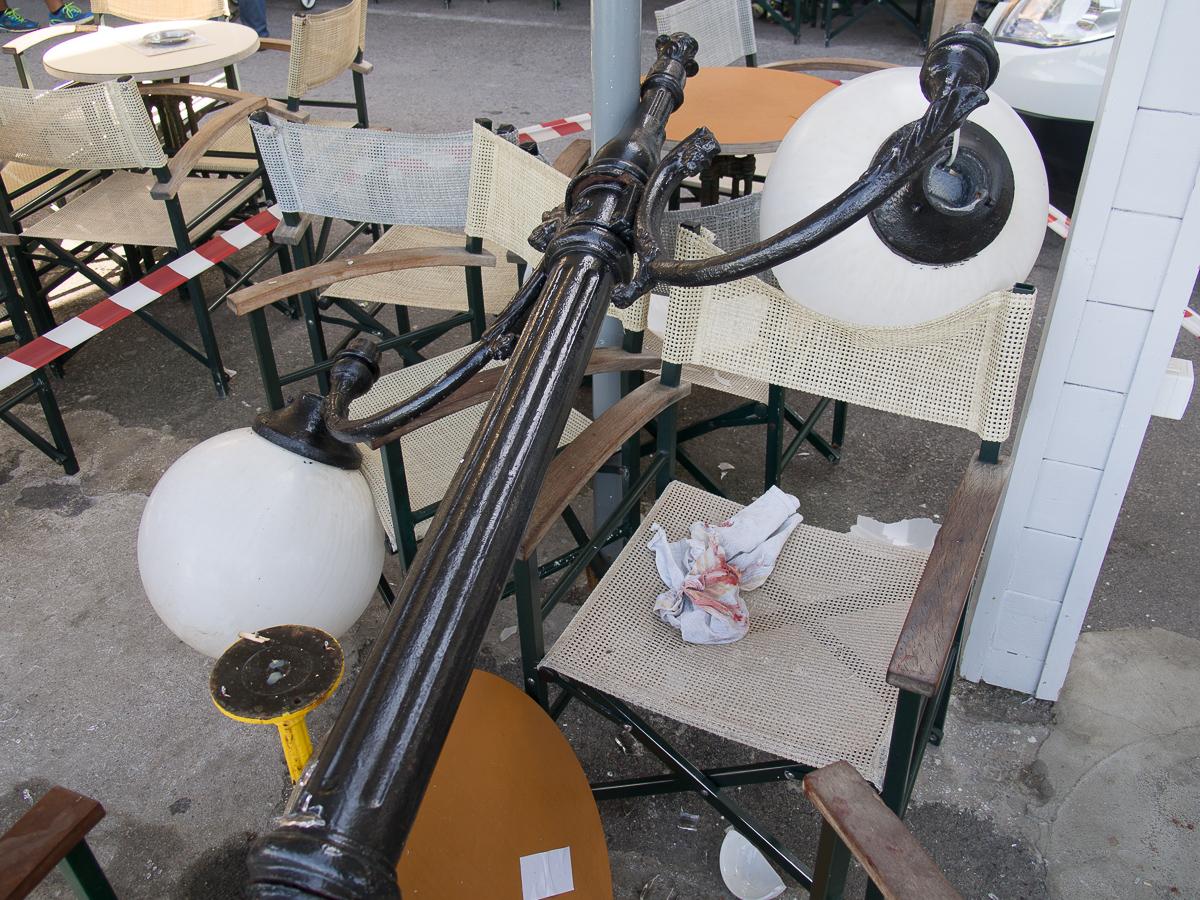 Ατύχημα σημειώθηκε, λίγο πριν τις 4 το μεσημέρι, στο Κουμ Καπί, όταν κολώνα φωτισμού έπεσε πάνω σε δύο γυναίκες-θαμώνες, οι οποίες έπιναν τον καφέ τους με αποτέλεσμα να τις τραυματίσει στο κεφάλι.