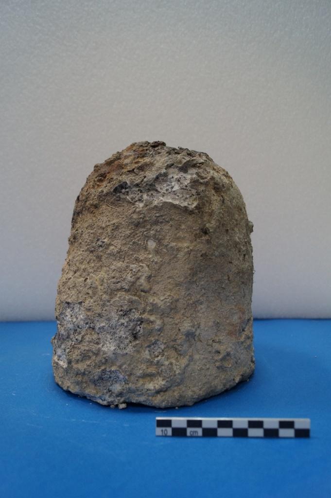 Τη δειγματοληψία από το βυθό εξυπηρετούσε η κοίλανση στη βάση με τους ήλους από σίδερο ή χαλκό, που παγίδευαν λασπώδη άμμο, λίθους και ιζήματα, αποκαλύπτοντας την ιδιαίτερη χρησιμότητα του αντικειμένου για την περίπτωση ελιγμών ή αγκυροβολίας. Αυτό το ταπεινό εργαλείο θεωρείται ζωτικής σημασίας για την ασφαλή ναυσιπλοΐα κατά την αρχαιότητα.