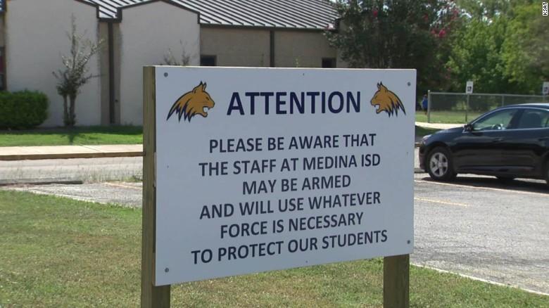 Για την ώρα δεν φαίνεται να μπορεί να βρεθεί μέση λύση. Προφανώς γι’ αυτό το λόγο και η Ανεξάρτητη Σχολική Περιοχή Μεντίνα στο Τέξας αποφάσισε να πάει τα πράγματα ένα βήμα παραπέρα: τοποθέτησε στα σχολεία της περιοχής πινακίδες οι οποίες αναγράφουν: “Προσοχή: Παρακαλούμε να γνωρίζετε ότι οι καθηγητές στα σχολεία της Ανεξάρτητης Σχολικής Περιοχής Μεντίνα μπορεί να οπλοφορούν και θα χρησιμοποιήσουν αναγκαία βία για να προστατεύσουν τους μαθητές τους”.