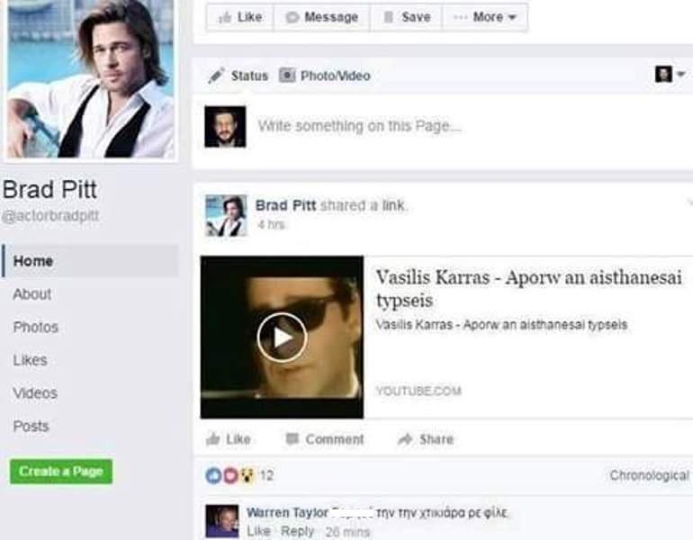Για του λόγου το αληθές σας δείχνουμε και την προσωπική ιστοσελίδα του ηθοποιού στο facebook, όπου και εκεί η λατρεία του για τα καψουροτράγουδα του Καρρά έχει ξεπεράσει κάθε προηγούμενο.