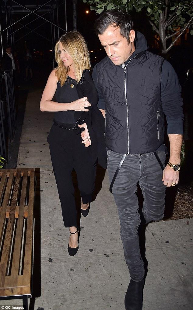 Την ώρα που το Χόλιγουντ βρίσκεται σε κατάσταση παροξυσμού αναζητώντας τα αίτια του διαζυγίου, εκείνη πηγαίνει για φαγητό με τον σύζυγό της Justin Theroux με τον οποίο φωτογραφίζονται χεράκι – χεράκι.