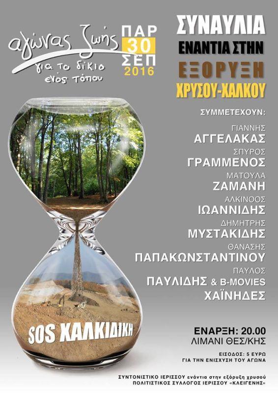 Την Παρασκευή, 30 Σεπτεμβρίου στις 8 το βράδυ πραγματοποιείται συναυλία ενάντια στην εξόρυξη χρυσού-χαλκού στο λιμάνι της Θεσσαλονίκης.
