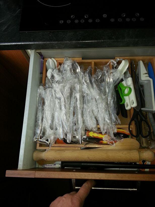 Όχι μόνο ότι κάποιος γέμισε τη μπανιέρα τους με μπαλόνια, αλλά συσκεύασε και τα μαχαιροπίρουνά τους και ξεκόλλησε τις ετικέτες από τις κονσέρβες τους.