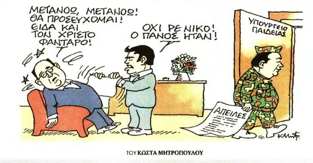 Ο υπουργός Εθνικής Άμυνας ανέβασε στο twitter ένα σκίτσο το link από το πρωτοσέλιδο της εφημερίδας «Τα Νέα» σχολιάζοντας εμμέσως πλην σαφώς με αυτόν τον τρόπο την διαφοροποίηση των ΑΝΕΛ με την πρόθεση του υπουργείου Παιδείας να προχωρήσει σε αλλαγές στο μάθημα των θρησκευτικών.