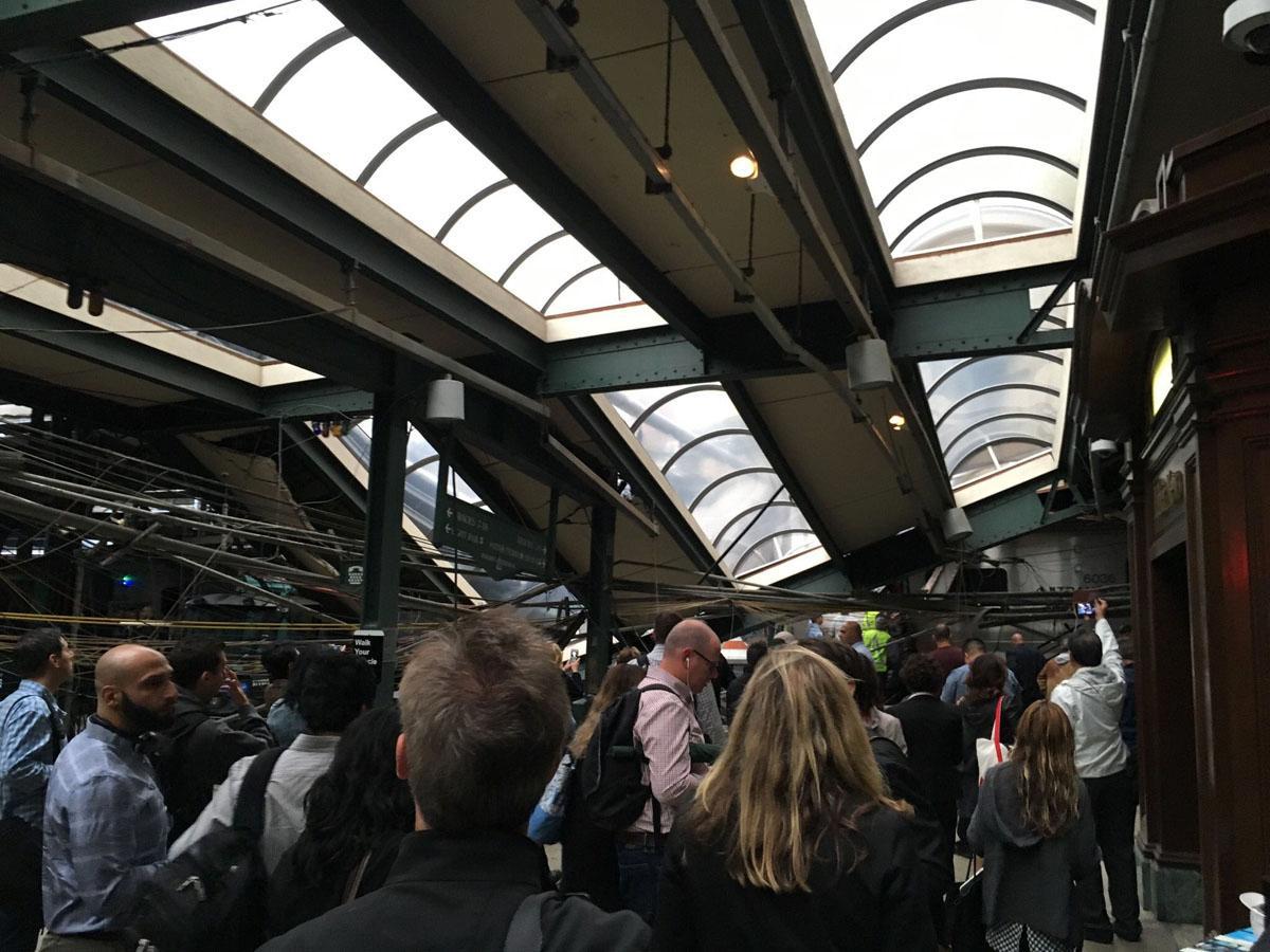 «Το τρένο μου μόλις έτρεξε με πλήρη ισχύ καταπάνω στον σταθμό του Χόμποκεν» έγραψε στον λογαριασμό του στο Twitter ένας επιβάτης.