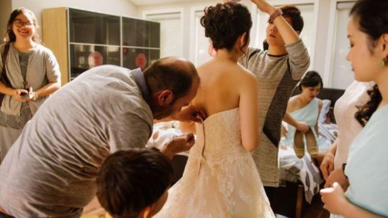 Η Τζο Ντου, ετοιμάζονταν να ανέβει να σκαλιά της εκκλησίας όταν το φερμουάρ του νυφικού της έσπασε. Δυστυχώς ήταν Κυριακή και δεν υπήρχε ανοιχτό ραφείο που να μπορούσε να τη βοηθήσει. Όσο πέρναγε η ώρα και το άγχος της νύφης αυξάνονταν, η φωτογράφος του γάμου πρότεινε να ρωτήσουν στη γειτονιά αν υπάρχει κάποιος που να ξέρει να ράβει τέτοιου είδους υφάσματα.