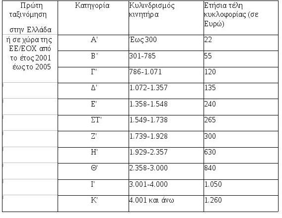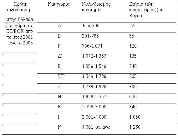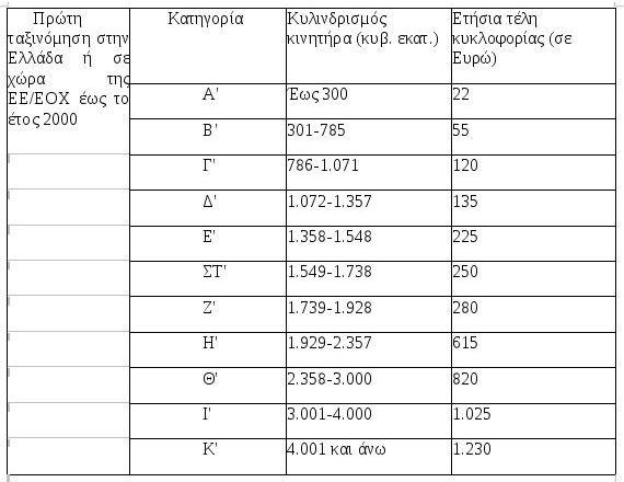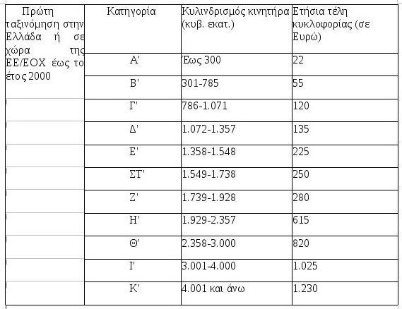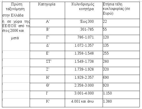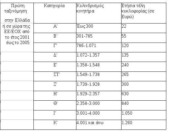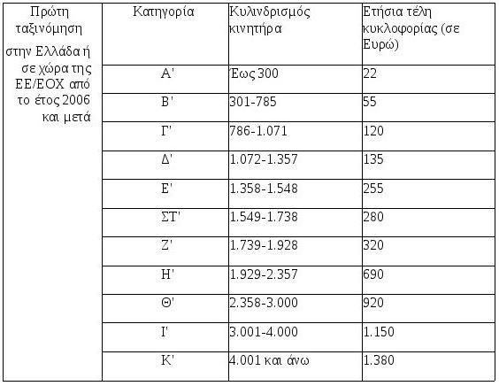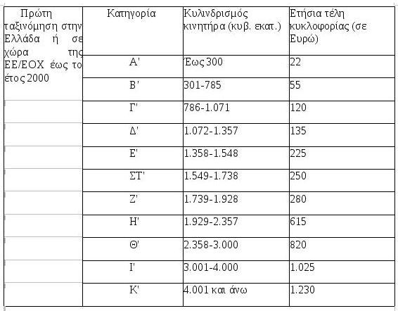 Στους πίνακες που ακολουθούν μπορείτε να δείτε αναλυτικά τους πίνακες με τα τέλη κυκλοφορίας για το 2017.