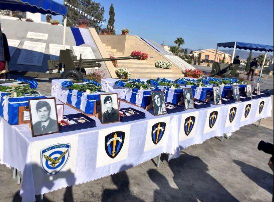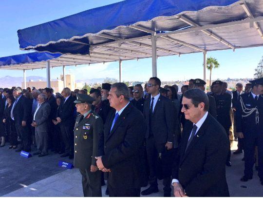 «Νιώθω δέος, συγκίνηση, αλλά και περηφάνια για τους ήρωες του έθνους», δήλωσε ο Πρόεδρος της Κυπριακής Δημοκρατίας Νίκος Αναστασιάδης. «Η Κύπρος το 1974 περίμενε τον ερχομό της Ελλάδας. Περίμενε τα ελληνικά φτερά. Ήρθαν μια χούφτα Έλληνες για την τιμή των όπλων», είπε και τόνισε ο πρόεδρος Αναστασιάδης. «Έγιναν λάθη. Η Κυπριακή πολιτεία εκφράζει μια συγγνώμη σε όσους πλήγωσε. Λέμε ένα μεγάλο ευχαριστώ στους συγγενείς για την προσφορά των ηρώων».