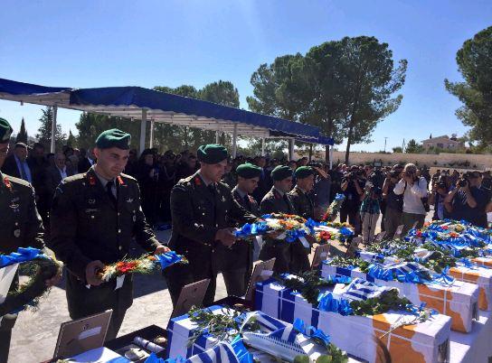 Η τελετή παράδοσης των λειψάνων έγινε στον Τύμβο της Μακεδονίτισσας και στο χώρο της θυσίας τελέστηκε τρισάγιο από τον Αρχιεπίσκοπο Κύπρου, Χρυσόστομο. Παρέστη ο υφυπουργός Άμυνας, Ιωάννης Αμανατίδης, αρχηγοί κομμάτων και συγγενείς των πεσόντων.