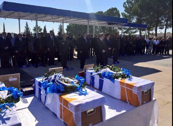 Στους συγγενείς ο πρόεδρος Αναστασιάδης απένειμε το Μετάλλιο Εξαίρετης Προσφοράς. Τα λείψανα των ηρώων στους οποίους αποδόθηκαν οι δέουσες τιμές, μεταφέρονται το απόγευμα στην αεροπορική βάση Τατοΐου, όπου θα γίνει τελετή στην παρουσία του προέδρου Παυλόπουλου.