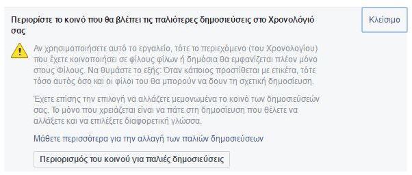 Τώρα, στην κατηγορία “Ποιοι μπορούν να δουν το περιεχόμενό μου”, επιλέξτε “Περιορισμός του κοινού για παλιότερες δημοσιεύσεις”, προκειμένου να ρυθμίσετε το προφίλ σας με τέτοιο τρόπο, ώστε μόνο οι φίλοι σας να μπορούν να δουν ό,τι είχατε αναρτήσει στο παρελθόν.