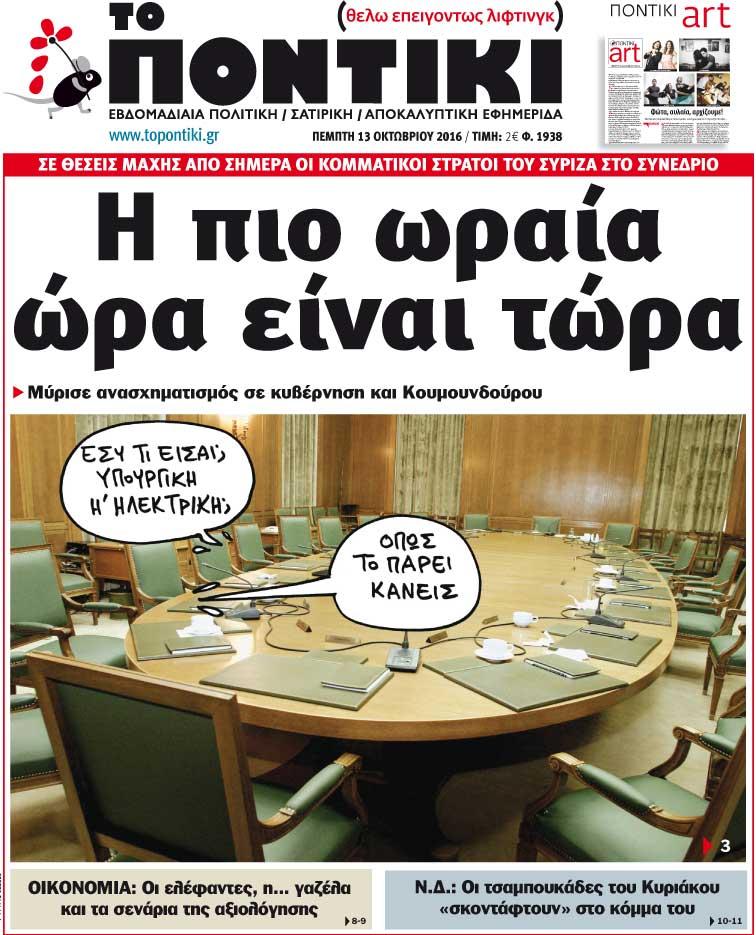Άλλα θέματα στο «Ποντίκι» που κυκλοφορεί το πρωί της Πέμπτης 13 Οκτωβρίου 2016: