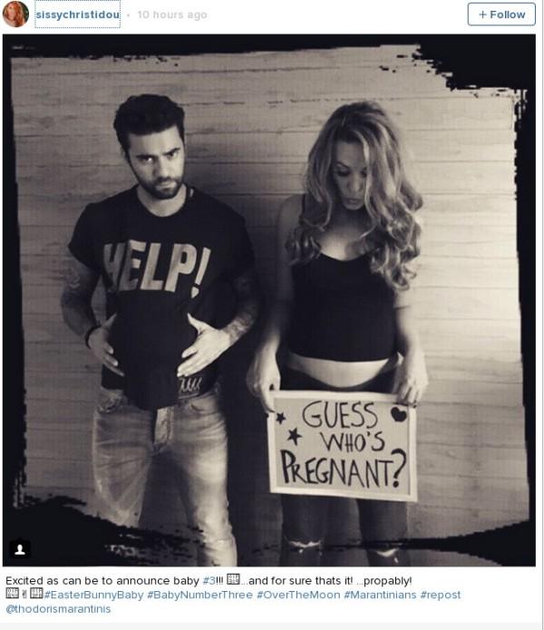 Ενα χιουμοριστικό και συνάμα γλυκό τρόπο αποφάσισαν να ανακοινώσουν τον ερχομό του τρίτου τους παιδιού η Σίσσυ Χρηστίδου και ο Θοδωρής Μαραντίνης.