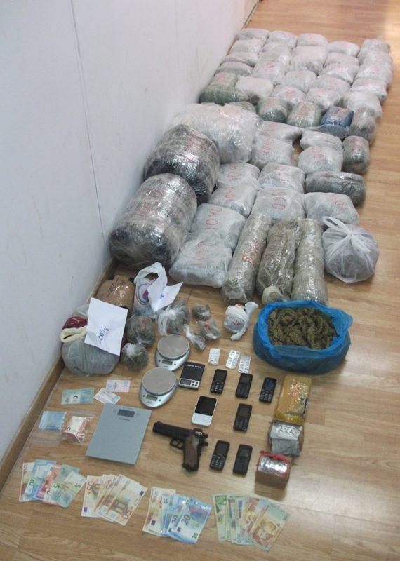 Σε έρευνες που επακολούθησαν στις οικίες των συλληφθέντων, μεταξύ άλλων, βρέθηκαν και κατασχέθηκαν ποσότητες κατεργασμένης –ακατέργαστης κάνναβης, σύνεργα εμπορίας ναρκωτικών, χρηματικά ποσά.