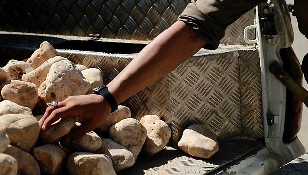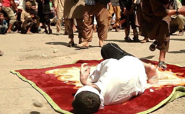 Με τα χέρια δεμένα πίσω από την πλάτη και γονατισμένοι οι δύο άνδρες που καταδικάστηκαν από τον ISIS για μοιχεία εκτελέστηκαν διά λιθοβολισμού.