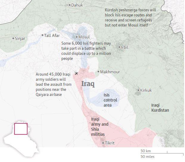 Η επιχείρηση ανακατάληψης της πόλης – η οποία είναι η δεύτερη του Ιράκ και πλούσια σε πετρέλαιο- σχεδιάζεται εδώ και πολλούς μήνες, από τις ιρακινές δυνάμεις καθώς και αντάρτες πιστούς στην κυβέρνηση του Ιράκ.