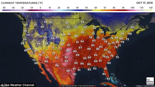 Χθες η θερμοκρασία ξεπέρασε του 27 βαθμούς Κελσίου καταγράφοντας νέα ρεκόρ στον μετεωρολογικό σταθμό στο αεροδρόμιο La Guardia, στην περιοχή του Κουίνς όπου άγγιξε τους 28,3 βαθμούς Κελσίου, το υψηλότερο επίπεδο που καταγράφεται την 17η Οκτωβρίου από το 1996.