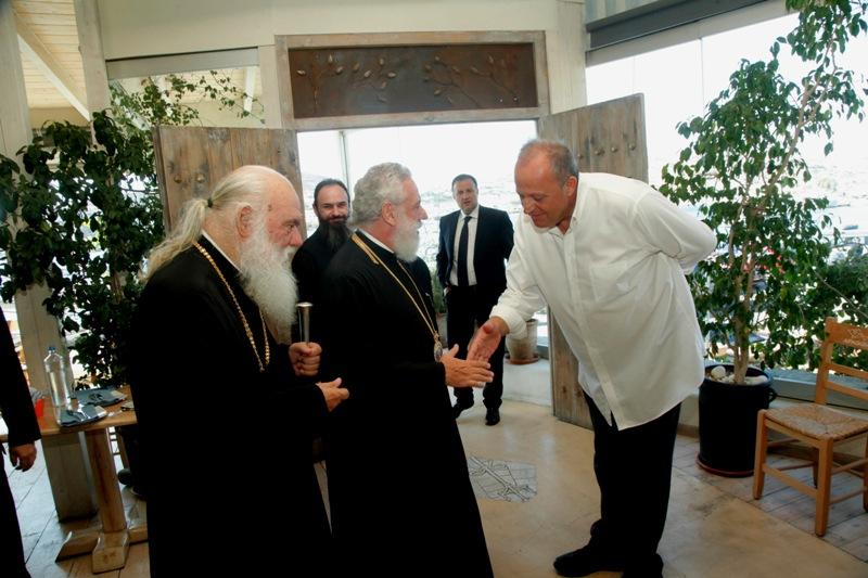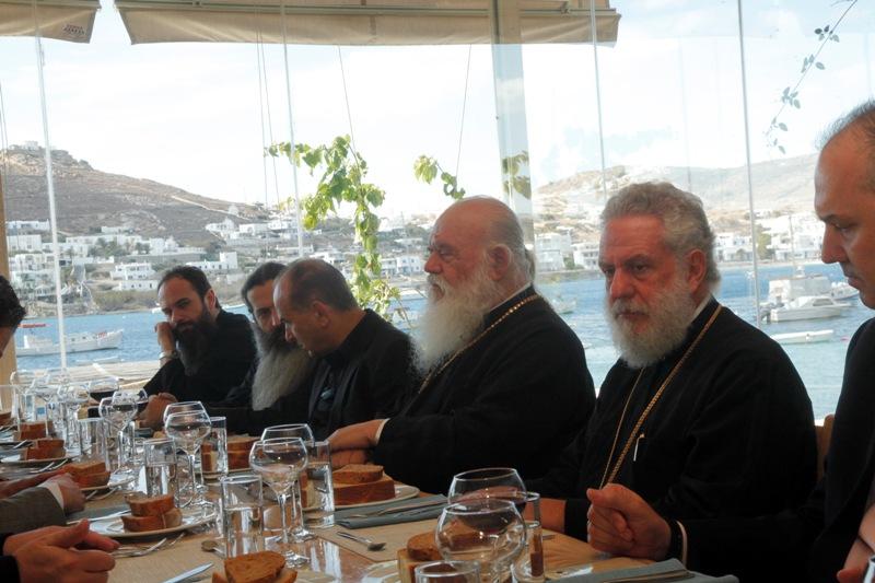 Εν συνεχεία, ο αρχιεπίσκοπος μετέβη σε γνωστό εστιατόριο της Μυκόνου, όπου και παρακάθισε σε γεύμα προς τιμή του.