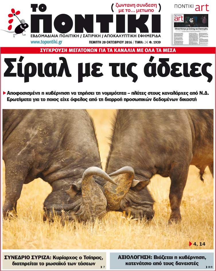Άλλα θέματα στο «Ποντίκι» που κυκλοφορεί το πρωί της Πέμπτης 20 Οκτωβρίου 2016: