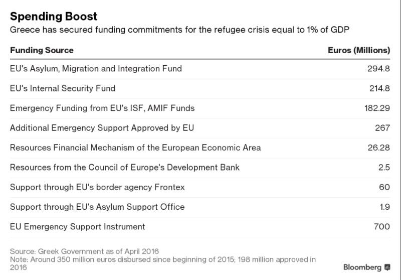 Με δεδομένο ότι η Κομισιόν προβλέπει οικονομική συρρίκνωση κατά 0,3% για φέτος, οι δαπάνες για βοήθεια των προσφύγων μπορεί να κάνουν τη διαφορά ανάμεσα στην συρρίκνωση και την εξισορρόπηση.