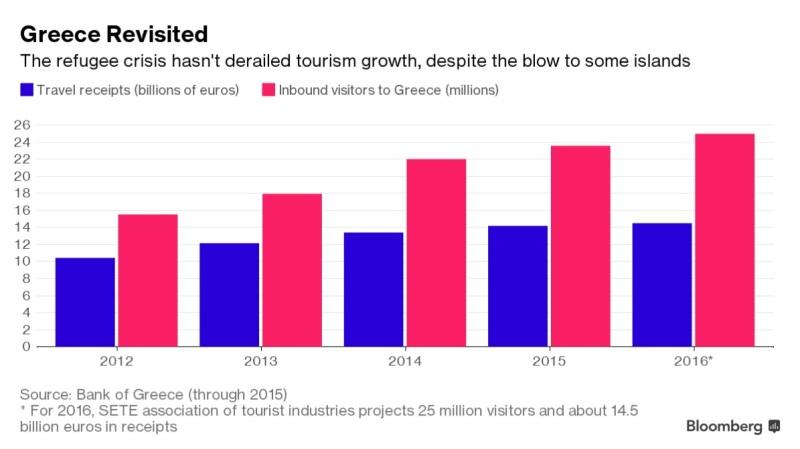 Εάν αυτά είναι καλοδεχούμενα νέα, την ώρα που η Ελλάδα προσπαθεί να κρατήσει τα δημοσιονομικά της σε τροχιά που θα ικανοποιούν τους δανειστές, υπάρχουν κι άλλα θετικά. Οι ανησυχία για το γεγονός ότι η προσφυγική κρίση θα εμπόδιζε τους τουρίστες να επισκεφθούν τη χώρα αποδείχθηκαν επίσης υπερβολικές.