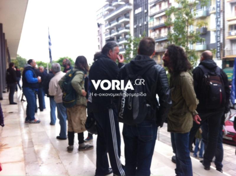 Μετά τα επεισόδια που σημειώθηκαν χθες στη Θεσσαλονίκη για τους πλειστηριασμούς πραγματοποιείται σήμερα νέα διαμαρτυρία. Τα μέλη της πρωτοβουλίας αλληλεγγύης εργαζομένων διαμαρτύρονται για την εκδίκαση υπόθεσης εκποίησης ακινήτου της Φίλκεραμ Τζόνσον