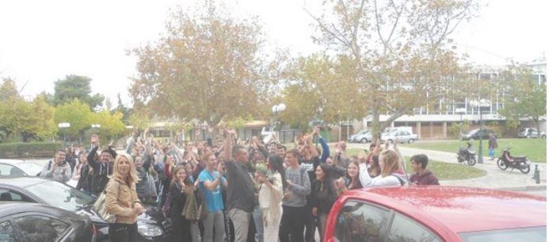 Μαθητές άρχισαν να χειροκροτούν το ζευγάρι και να σφυρίζουν. Τους τραγούδησαν το «σήμερα γάμος γίνεται» και τους ευχήθηκαν «βίο ανθόσπαρτο». Οι νεόνυμφοι ξαφνιασμένοι από τη θερμή αντίδραση των μαθητών φωτογραφήθηκαν μαζί τους. Το φιλί του γάμου τους πλαισιώθηκε από μαθητές που τους χειροκρότησαν.