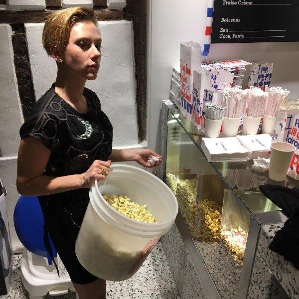 Η ίδια η σταρ, όπως είχε υποσχεθεί, στήθηκε πίσω από τον πάγκο και πούλησε χωνάκια με ποπ κορνη στους πελάτες που συνέρρευσαν για να την δουν από κοντά