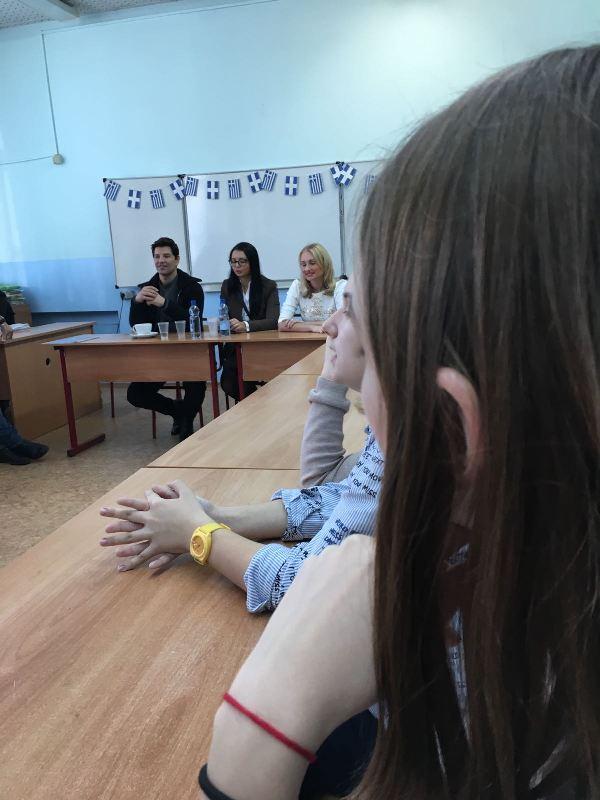 Ο Ελληνας σταρ τούς μίλησε για την Ελλάδα, τις ελληνικές αξίες και την ελληνική παιδεία, έπαιξαν αρμόνιο και τραγούδησαν όλοι μαζί ελληνικά τραγούδια, ενώ έβγαλαν αναμνηστική φωτογραφία μαζί του οι Ρώσοι μαθητές και δάσκαλοι.