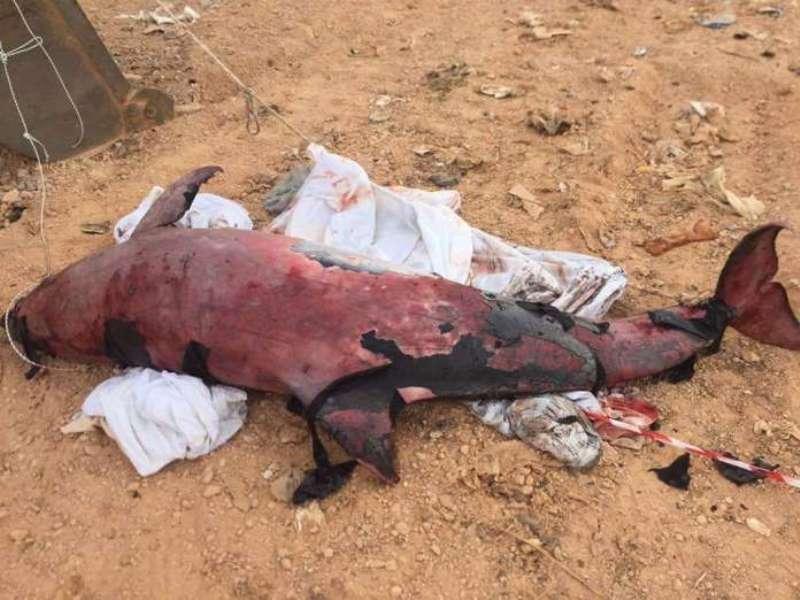 Τα θαλάσσια ρεύματα είχαν ξεβράσει νεκρό ένα μικρό κήτος στην παραλία. Όπως αποτυπώνεται και στις φωτογραφίες λείπει το δέρμα στο μεγαλύτερο μέρος του σώματος και γενικά η εικόνα του υποδηλώνει σημάδια μεγάλης κακουχίας.