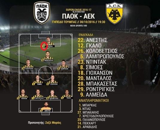 Με ένα μικρό… λαθάκι ανέβηκε στους επίσημους λογαριασμούς της ΑΕΚ στα social Media, η ενδεκάδα της ομάδας για το ντέρμπι με τον ΠΑΟΚ που ξεκινάει σε λίγη ώρα στην Τούμπα.