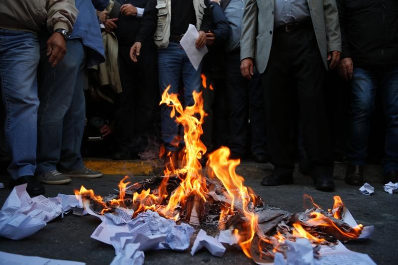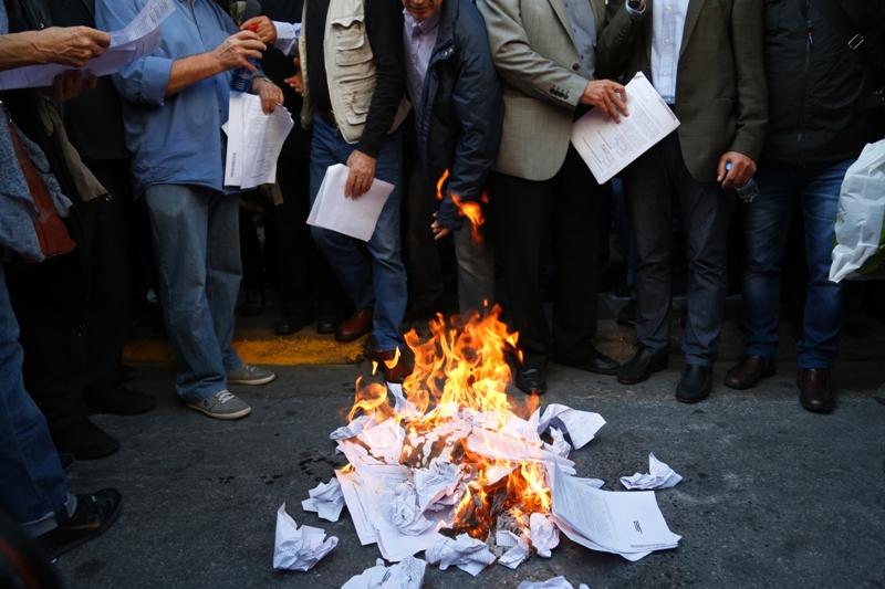 Οι συνταξιούχοι εξέφρασαν την αγανάκτηση τους για τις επιστολές που έλαβαν από το υπουργείο Εργασίας, τις οποίες κρατούν ψηλά και αναφέρουν ότι θα τις επιστρέψουν στον κ.Κατρούγκαλο. «Θα τις κάψουμε», λένε οι συνταξιούχοι, όπως έκαναν χθες σε αντίστοιχη διαμαρτυρία οι συνταξιούχοι στη Θεσσαλονίκη.
