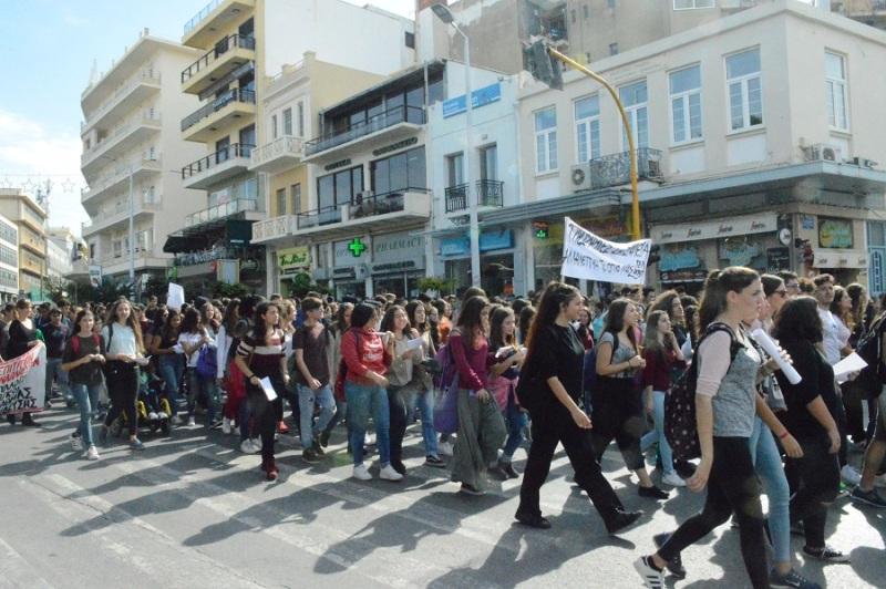 Μεγάλο πλήθος μαθητών αλλά και φοιτητές και καθηγητές, συγκεντρώθηκαν λίγο μετά τις 11 στην Πλατεία Αγοράς και στη συνέχεια ξεκίνησαν πορεία στους κεντρικούς δρόμους της πόλης, με συνθήματα όπως «Για όλα τα παιδιά ανοίξτε τα σχολεία, η εκπαίδευση σκοτώνει την τρομοκρατία» και «Ψωμί-Παιδεία-Ελευθερία, θέλουμε τους πρόσφυγες σε όλα τα σχολεία».
