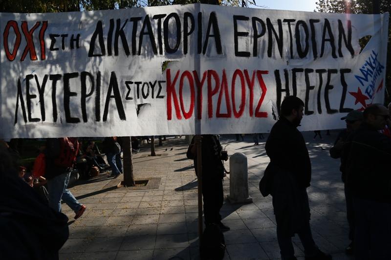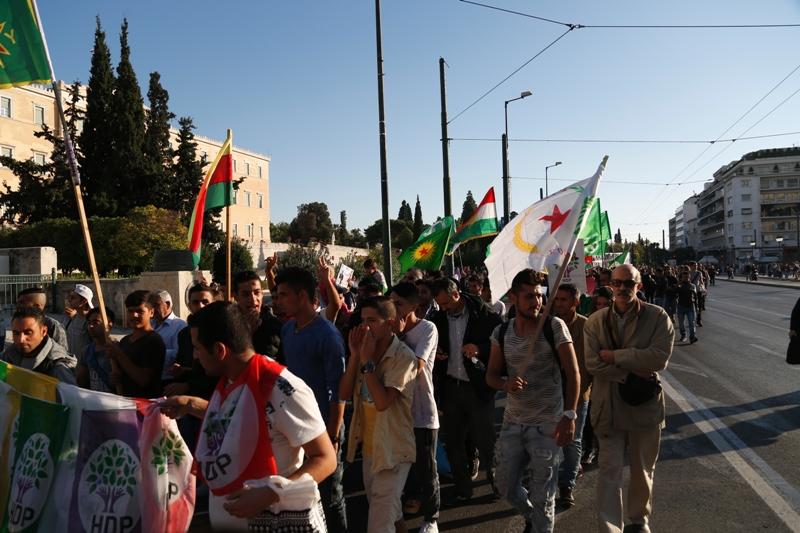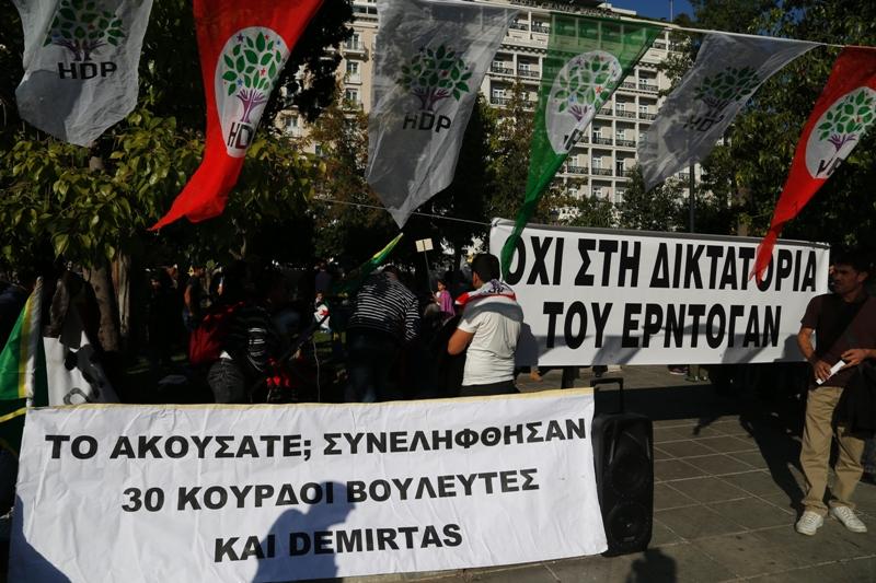 Πορεία διαμαρτυρία προς την τουρκική πρεσβεία υπέρ του φιλοκουρδικού κόμματος Δημοκρατίας των Λαών (HDP) κατά των διώξεων που διενεργεί ο Ερντογάν εις βάρος των μελών του κόμματος, πραγματοποίησαν Κούρδοι που ζουν στην Ελλάδα, αλλά και μέλη πολιτικών κινημάτων στο κέντρο της Αθήνας.
