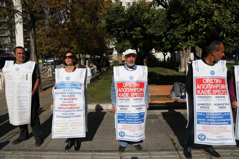 Υποστηρικτές του Αρτέμη Σώρρα, ο οποίος ισχυρίζεται ότι διαθέτει το ποσό των… 600 δισ. ευρώ, για την κάλυψη του δημοσίου χρέους, κρατώντας πλακάτ και μοιράζοντας φυλλάδια, καλούσαν τους πολίτες της Αθήνας να «υπογράψουν για την ελευθερία» τους.