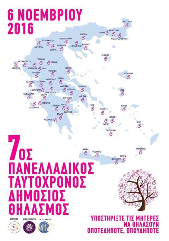 Στο πλαίσιο του εορτασμού της Παγκόσμιας Εβδομάδας Μητρικού Θηλασμού, το «Πανελλήνιο Δίκτυο Εθελοντικών Ομάδων Υποστήριξης Μητρικού Θηλασμού και Μητρόητας» διοργανώνει όπως κάθε χρόνο, τον 7ο Πανελλαδικό Ταυτόχρονο Δημόσιο Θηλασμό.