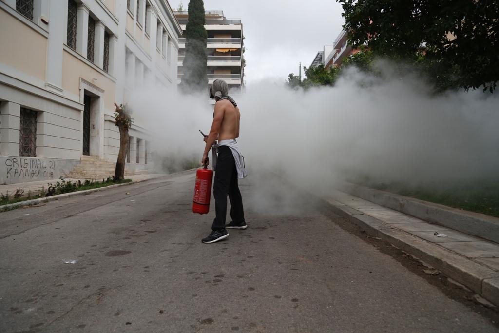 Συγκεκριμένα, νεαρά άτομα, αφού έκαψαν κάδους απορριμμάτων, ξήλωσαν πινακίδες και έσπασαν φανάρια, άρχισαν να πετούν βόμβες μολότοφ, πέτρες και διάφορα άλλα αντικείμενα σε διμοιρίες των ΜΑΤ, μόλις εμφανίστηκαν στην περιοχή.