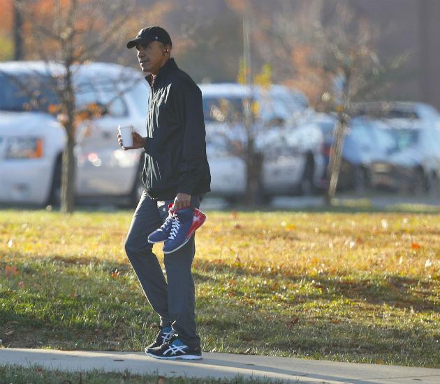 Ο φωτογραφικός φακός «συνέλαβε» τον Αμερικανό Πρόεδρο στο Fort McNair της Ουάσινγκτον, με ένα ζευγάρι αθλητικά παπούτσια ανά χείρας. Όπως το 2008, έτσι και το 2012, ο Μπαράκ Ομπάμα είχε παίξει μπάσκετ την ημέρα των εκλογών, στο Σικάγο.
