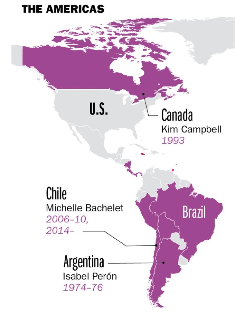 Εάν εκλεγεί η Χίλαρι Κλίντον ναι μεν θα είναι η πρώτη γυναίκα πρόεδρος των ΗΠΑ, αλλά παγκόσμια, οι ΗΠΑ, θα είναι η 60η χώρα που έχει εκλέξει γυναίκα στο ανώτατο αξίωμα.