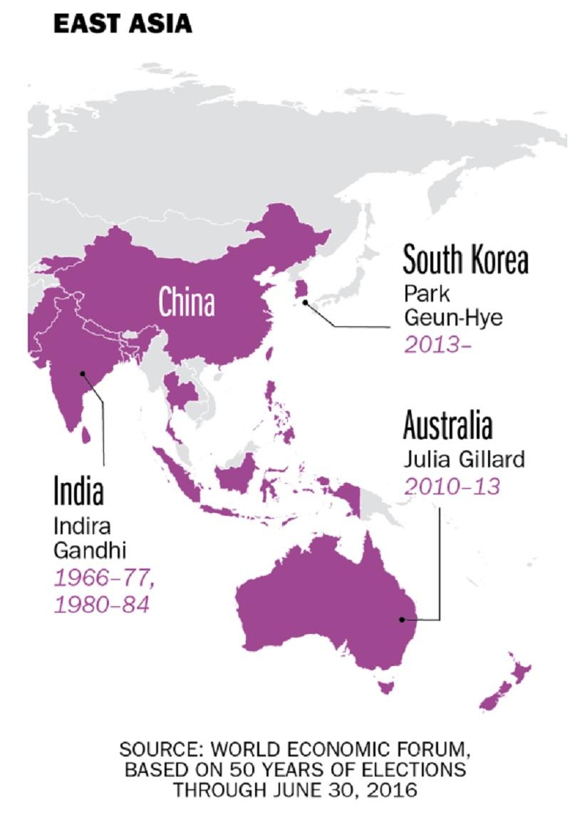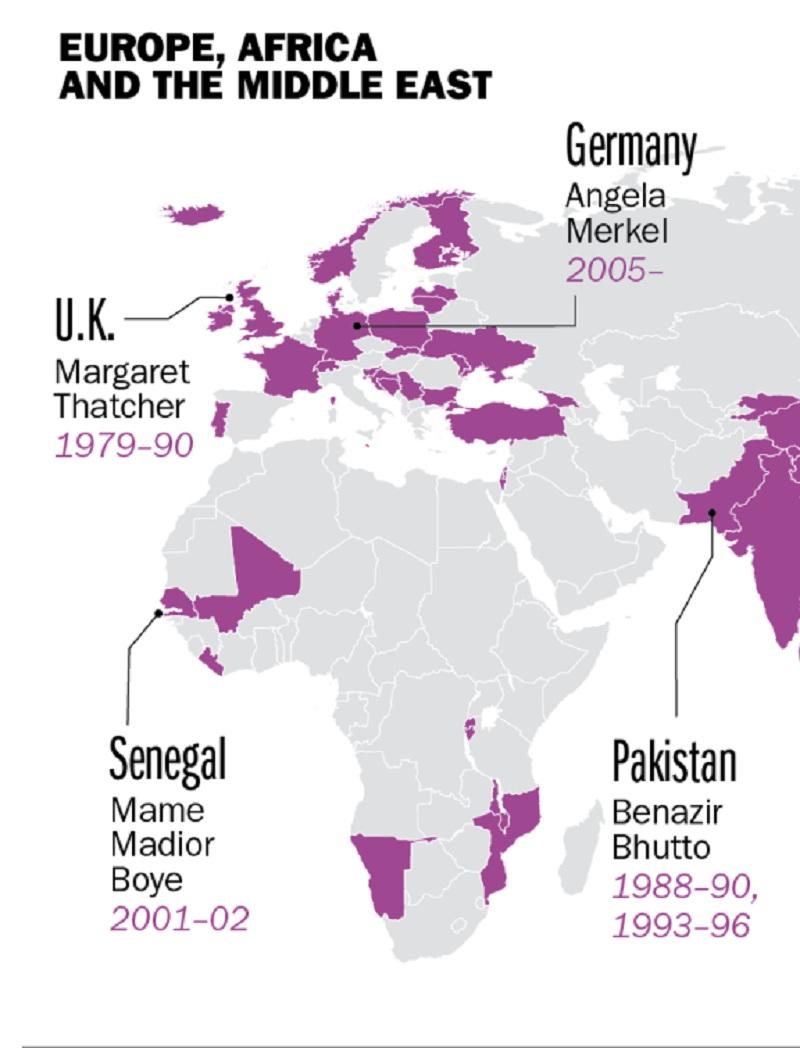 Οι χώρες που έχουν εκλέξει γυναίκα πρωθυπουργό, ή πρόεδρο (ανάλογα με το πολίτευμα) είναι οι εξής: